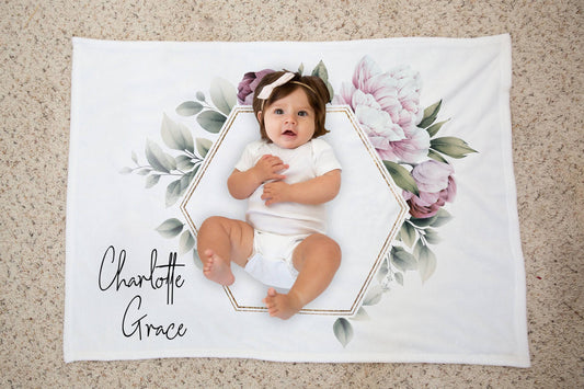 Personalized Modern Floral Baby Blanket