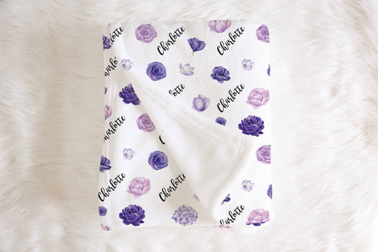Personalized Purple Floral Baby Blanket