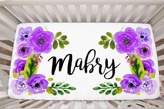 Personalized Purple Floral Crib Sheet