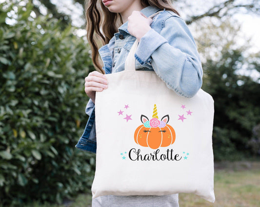 Unicorn Pumpkin Trick or Treat Bag - Personalized Halloween Bag