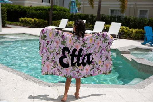 Vintage Floral Personalized Beach Towel