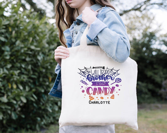 Will Trade Brother For Candy Trick or Treat Bag - Personalized Halloween Bag