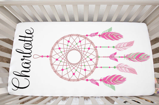 Personalized Monochrome Dreamcatcher Crib Sheet