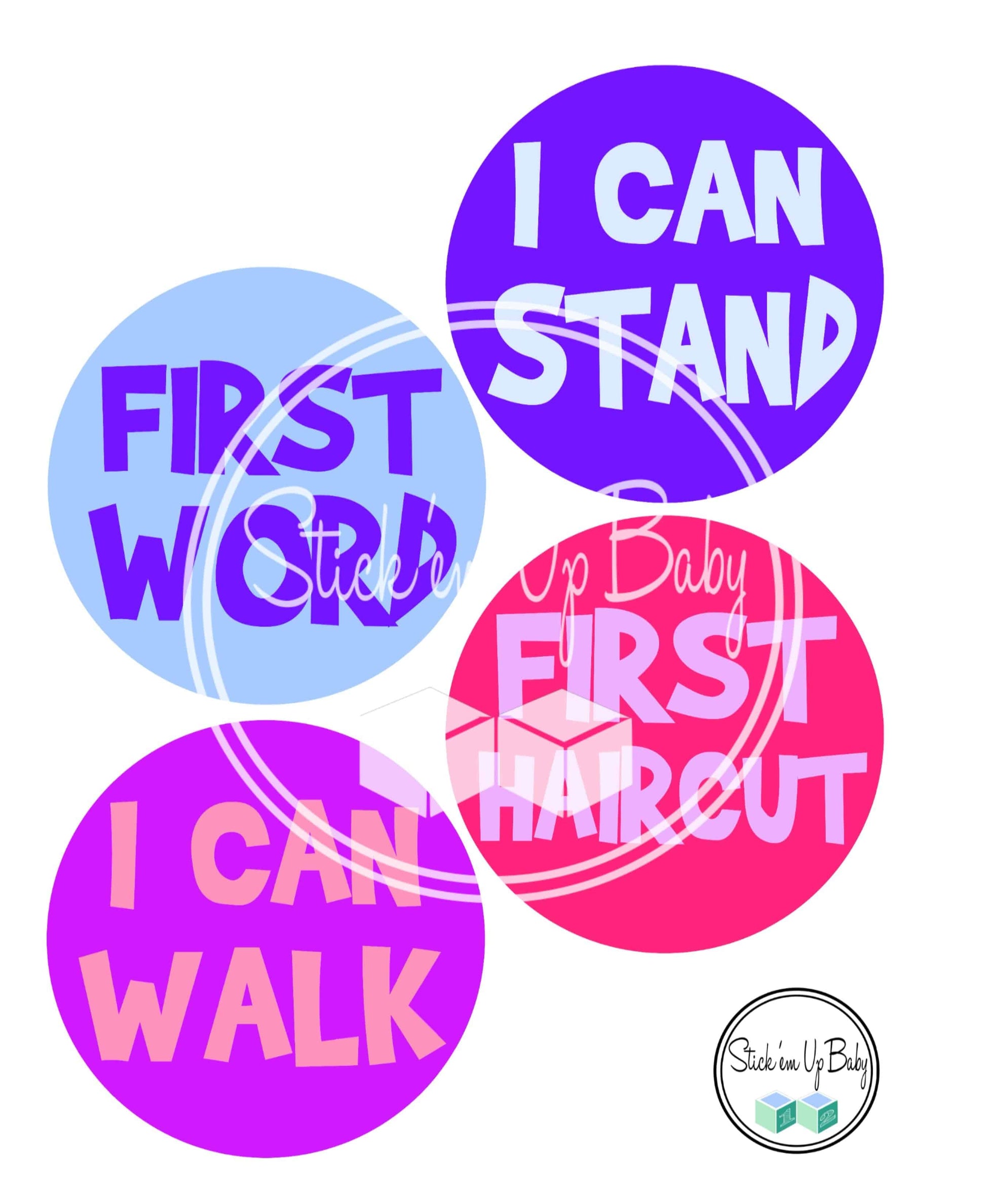 - Each sticker is 4" in diameter. There are 12 different milestones.