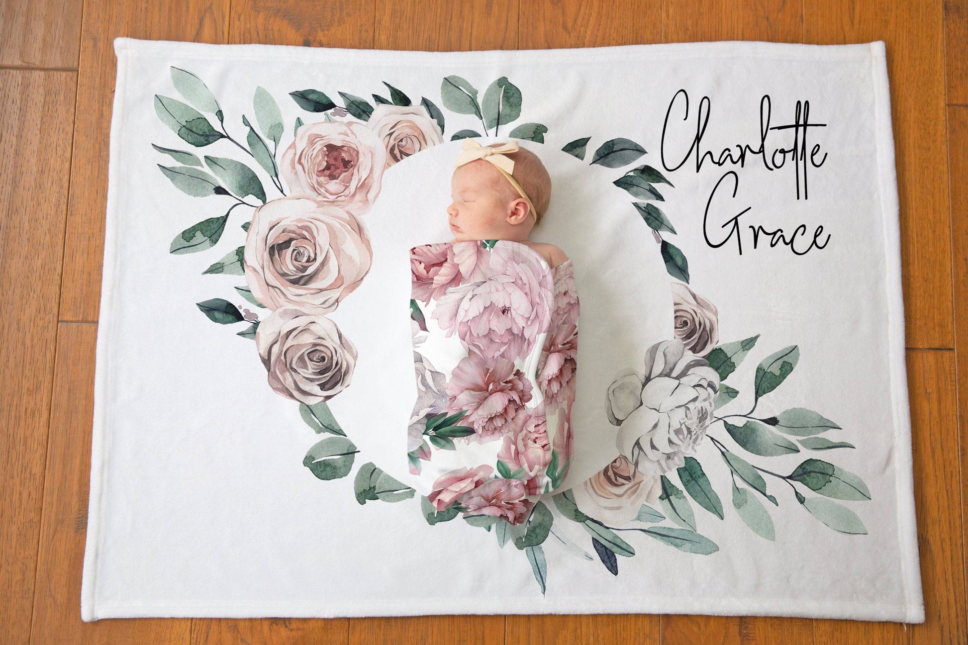 Our gorgeous vintage floral personalized baby blanket is the perfect backdrop to those new baby and monthly baby photos! These are so soft your baby will love cuddling with their personalized blanket. This blanket is sure to become a treasured keepsake! All designs are printed using dye sublimation on 1 side of the blanket. Choose from four different types of blankets: fleece, minky, sherpa or jersey swaddle. Then choose from 4 different size options: 30"x40", 40"x60", 50"x60", or 60"x80".